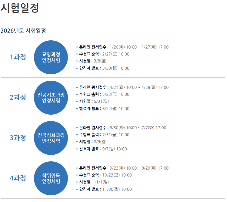 2026년 독학학위제(독학사) 시험 일정